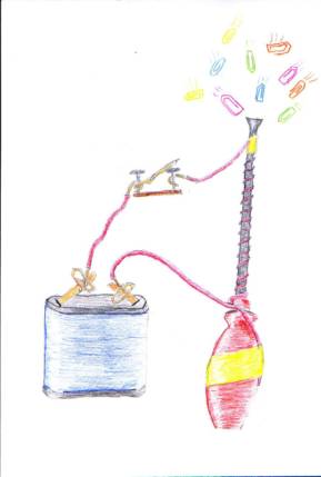 Material: Klingeldraht, Batterie, langer Schraubenzieher,